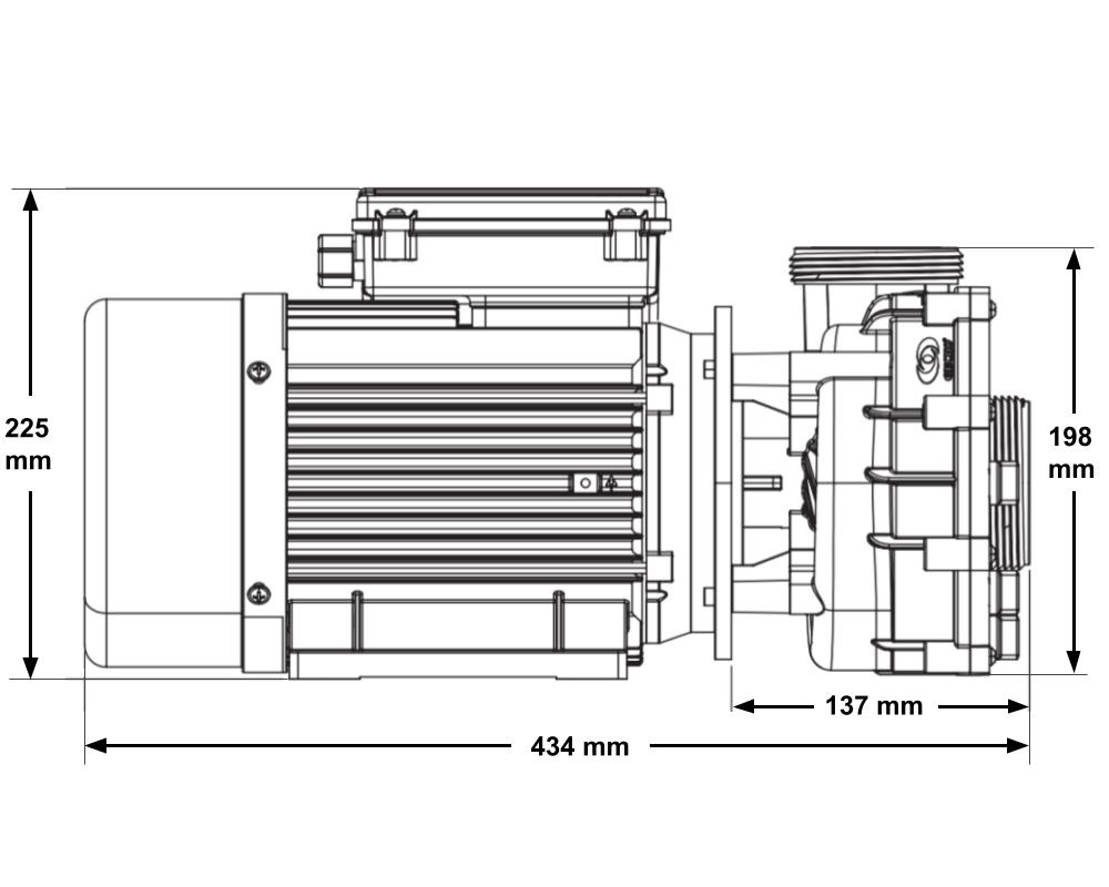 Röranslutningar: Hanhane (2-tums MBT) med en ytterdiameter på 78 mm. Denna pump levereras med pumpkopplingar för 2-tums rör.